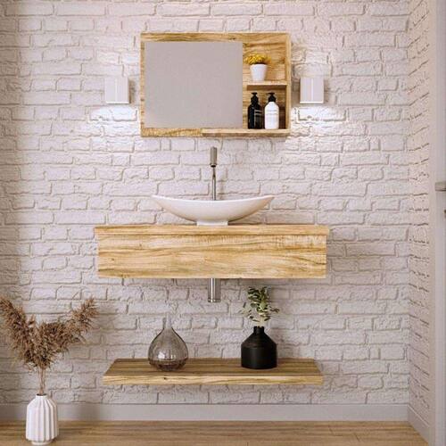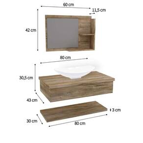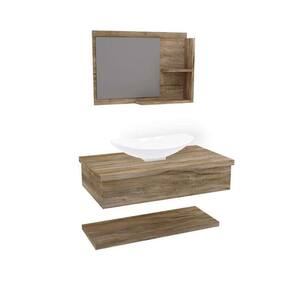 Conjunto para Banheiro Bancada com Cuba L45 Canoa, Prateleira e Espelheira City 806 Carvalho