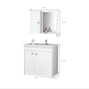 Esse Conjunto para Banheiro é a escolha ideal para quem busca praticidade e estilo no ambiente. O conjunto é elaborado com materiais de alta qualidade, como MDF de 12 mm de espessura e acabamento de verniz poliéster brilhante, garantindo resistência e durabilidade ao produto.