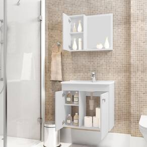 Esse Conjunto para Banheiro é a escolha ideal para quem busca praticidade e estilo no ambiente. O conjunto é elaborado com materiais de alta qualidade, como MDF de 12 mm de espessura e acabamento de verniz poliéster brilhante, garantindo resistência e durabilidade ao produto.