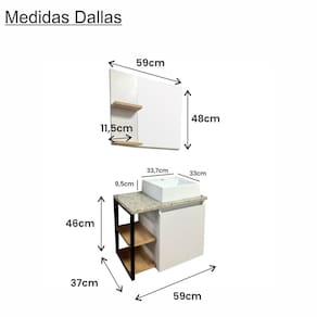 O conjunto para banheiro Dallas Mazzu Móveis é ideal para banheiro pequenos, mas que não abrem mão do estilo e da qualidade. O conjunto é 100% MDF, com qualidade superior. Também acompanha o tampo para granito e estrutura de prateleiras de ferro. Acabamento da Cuba: Gel Acabamento da Porta: Pintura UV Acabamento da Prateleira: Melamínico Acompanha Cuba: Sim Acompanha Gaveteiro: Não Acompanha Manual de Instalação: Não Acompanha Parafusos Para Fixação Na Parede: Sim Acompanha Tampo: Sim Acompanha Válvula: Não Ambiente Principal: Banheiro codigo_ean: 7900288166920 Cor: Branco / Tropical Cor da Cuba: Branco Cor da Porta: Branco Cor do Produto: Branco / Tropical Cor Interna: Branco Escala de Brilho: Fosco Escala de Brilho da Porta: Fosco Escala de Brilho da Prateleira: Fosco Formato da Cuba: Quadrado Formato Espelheira: Retangular Furação para Cuba e Torneira: Sim Informações Complementares: Não suba ou se apoie no gabinete. Itens Inclusos: 1 Gabinete, 1 Cuba, 1 Espelho e Kit Ferragens Linha ou Coleção: Dallas Manual de Montagem e Instalação: https://product-hub-prd.madeiramadeira.com.br/890504590/documents/6bceef0b-6a83-43e3-a6cf-fda7396493022965206369617486136988472.pdf Marca: MAZZU MOVEIS Material da Cuba: Mármore Sintético Material da Porta: MDF Material da Prateleira: MDF Material do Tampo: Granito Material Principal: MDF Medida da Cuba (C x L x P): 9,5 x 33,7 x 33 Medida da Espelheira (A x L x P): 48 x 59 x 11,5 Medida do Gabinete (A x L x P): 46 x 59 x 37 Necessita Montagem: Não Origem do Produto: Nacional Peso: 29,48 kg Peso Máximo por Prateleira: 2 kg Possui Espelheira: Sim Possui Gabinete: Sim Possui Gavetas: Não Possui iluminação: Não Possui Nichos: Não Possui Pés: Não Possui Recorte No Tampo Para Cuba: Sim Possui Recorte No Tampo Para Misturador: Não Possui Rodízio: Não Possui Sifão: Não Possui Tampo: Sim Possui Tampo de Vidro: Não Produto Montado: Sim Recomendações de Uso, Manutenção e Limpeza: Verifique vazamentos após a instalação. Limpe com pano úmido. Não utilize materiais abrasivos para limpeza. Suporta Até (kg): 15 kg Suporte para Toalheiro: Não Tamanho do Gabinete: Pequeno: Abaixo de 60cm de largura Tipo de Cuba: Apoio Tipo de Dobradiça/Corrediça da Porta: Metálica Tipo de Gabinete: Gabinete Suspenso Tipo de Porta: Abrir Tipo de Puxador da Porta: Não Contém Válvula indicada: 7/8 Marca: Não Informado
