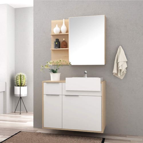 Conjunto para Banheiro com Espelheira e Gabinete com Cuba Jazz Móveis Bosi Faia/Branco