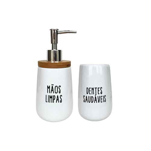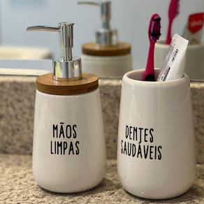 • Dimensões: Porta Sabonete Líquido Ø 8,5x19cm | Porta Escovas Ø 8,8x13cm