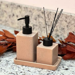 Transforme seu banheiro com sofisticação e estilo. Feito em cerâmica granilite nude, o conjunto une funcionalidade e elegância, valorizando cada detalhe do ambiente.