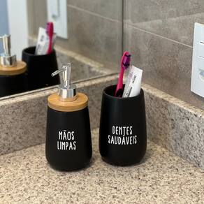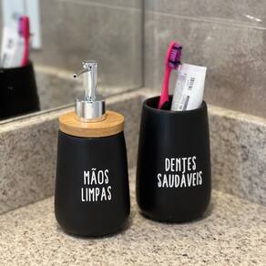 • Dimensões: Porta Sabonete Líquido Ø 8,5x19cm | Porta Escovas Ø 8,8x13cm