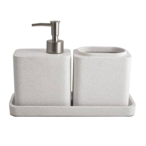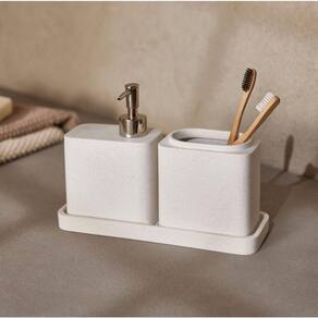 - Dimensões: Porta Sabonete Líquido 11x7x16,5cm | Porta Escova 11x7x11,5cm | Suporte 25x9x2cm