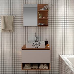 Conjunto Para Banheiro. Com design prático e funcional, estas peças ao ambiente toques de modernidade e elegância. Possuem estruta em MDP de 15mm, e acabamento em pintura UV/BP. Gabinete possui 01 porta basculante com dobradiças metálicas e articulador com trava, 01 nicho, espelheira com 03 prateleiras para tornar sua rotina mais pratica, espelho ja fixado no painel, gabinete suspenso ideal para cuba de apoio (cuba não inclusa). Este conjunto é uma ótima escolha para manter seus produtos de higiene e beleza sempre organizados. Estes produtos chegarão na sua casa separados em 02 volumes.