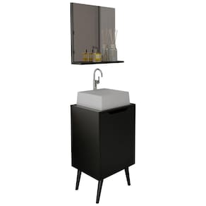 Conjunto Para Banheiro Gabinete Com Cuba e Espelheira Preto BN3630x41x42 Tecno Mobili