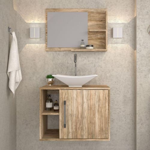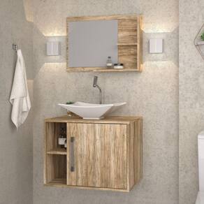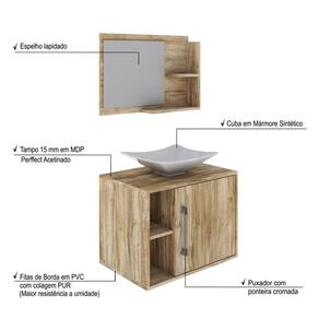 Conjunto para Banheiro Gabinete com Cuba Folha L38 e Espelheira Laura 600 Yescasa Carvalho - Marrom