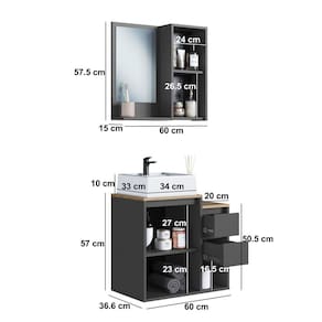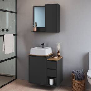 Conheça o conjunto gabinete para banheiro Art In Móveis, desenvolvido para otimizar o espaço e guardar pertences. Aproveite! Este produto foi produzido em excelente material MDP de madeira reflorestada ecologicamente correta e com acabamento Finish Foil Acetinado, que garante maior resistência e qualidade em seu móvel. A essência de criar soluções que trazem mais conforto sua vida. Esse é o grande diferencial dos produtos Art In Móveis. Cada nova ideia é uma mistura de criatividade, funcionalidade e muita dedicação. Produto acompanha cuba. Acabamento da Cuba: Liso Acabamento da Gaveta: Finish Foil Acabamento da Porta: Finish Foil Acabamento da Prateleira: Finish Foil Acompanha Cuba: Sim Acompanha Gaveteiro: Não Acompanha Manual de Instalação: Sim Acompanha Parafusos Para Fixação Na Parede: Sim Acompanha Tampo: Sim Acompanha Válvula: Não Altura do Espelho: 45 cm Ambiente Principal: Banheiro codigo_ean: 7900288279156 Complexidade da Montagem: Média: pode ser montado por mais de uma pessoa e/ou necessite de maior conhecimento para montagem Cor: Grafite Cor da Cuba: Branco Cor da Gaveta: Preto Cor da Porta: Preto Cor do Produto: Grafite Cor Flex: Não Cor Interna: Grafite Escala de Brilho: Fosco Escala de Brilho da Gaveta: Fosco Escala de Brilho da Porta: Fosco Escala de Brilho da Prateleira: Fosco Espessura do Espelho: 3 mm Formato da Cuba: Retangular Formato do Espelho: Retangular Formato Espelheira: Retangular Furação para Cuba e Torneira: Não Gaveta com Chave: Não Itens Inclusos: 1 Gabinete, 1 Espelheira, 1 Cuba, Kit Ferragens e Manual de Montagem Largura do Espelho: 28 cm Linha ou Coleção: Bari Manual de Montagem e Instalação: https://product-hub-prd.madeiramadeira.com.br/928027068/documents/eb58e428-a12f-44c4-acde-4cd1d033fe533298798522517617554889569.pdf Marca: Art in Móveis Material da Cuba: Mármore Sintético Material da Gaveta: MDP Material da Porta: MDP Material da Prateleira: MDP Material do Tampo: MDP Material Principal: MDP Medida da Cuba (C x L x P): 10x34x33 Medida da Espelheira (A x L x P): 57,5x60x15 Medida do Gabinete (A x L x P): 57X60X36,6 Montagem Flex: Não Necessita Montagem: Sim Origem do Produto: Nacional Peso: 27,1 kg Peso Máximo por Gaveta: 5 kg Peso Máximo por Prateleira: 5 kg Possui Espelheira: Sim Possui Gabinete: Sim Possui iluminação: Não Possui Nichos: Sim Possui Pés: Suspenso Possui Recorte No Tampo Para Cuba: Não Possui Recorte No Tampo Para Misturador: Não Possui Rodízio: Não Possui Sifão: Não Possui Tampo: Sim Possui Tampo de Vidro: Não Produto Montado: Não Quantidade de Espelhos: 01 Recomendações de Uso, Manutenção e Limpeza: Para a limpeza do móvel utilizar pano levemente umedecido Sistema de Montagem: Parafusos, cavilhas e minifix Suporta Até (kg): 30 kg Suporte para Toalheiro: Não Tamanho do Espelho (A x L): 45x28 Tamanho do Gabinete: Médio: de 60cm a 80cm de largura Tamanho do Produto: 114,5x60x36,6 Tipo de Corrediça da Gaveta: Metálica Telescópica Tipo de Cuba: Sobrepor Tipo de Dobradiça/Corrediça da Porta: Metálica Tipo de Fixação do Espelho: Silicone Tipo de Gabinete: Gabinete Suspenso Tipo de Gaveta: Externa Tipo de Porta: Bater Tipo de Puxador da Gaveta: Não Possui Tipo de Puxador da Porta: Não Contém