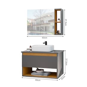 O Conjunto para Banheiro Gabinete Suspenso com Cuba e Espelheira Florence é a escolha ideal para quem deseja um ambiente bonito, funcional e bem aproveitado. Com design contemporâneo e linhas clean, ele se adapta perfeitamente a lavabos ou banheiros compactos. O gabinete suspenso possui uma porta com compartimento interno para armazenar produtos de higiene e objetos pessoais com praticidade. A cuba que acompanha o conjunto complementa o visual com um toque moderno e elegante. A espelheira, além de funcional, contribui para ampliar visualmente o espaço, oferecendo nichos abertos para apoiar pequenos itens do dia a dia. Fabricado com materiais resistentes e acabamento de qualidade, o conjunto Florence oferece praticidade, organização e um visual sofisticado para seu ambiente. Características Tipo: Conjunto para Banheiro com Gabinete, Cuba e Espelheira Modelo: Florence Suspenso Cor: Cinza Gabinete com 1 porta e espaço interno Espelheira com espelho central e nichos laterais Cuba inclusa (verificar material: cerâmica, mármore sintético ou polipropileno) Instalação: Suspensa (fixação na parede) Material: MDP ou MDF de alta resistência Acabamento: Pintura UV fosca ou brilho (conforme o modelo) Ideal para banheiros e lavabos Dimensões do Produto Espelheira Altura: 37,5cm Largura: 60cm Profundidade: 14cm Gabinete Altura: 37,5cm Largura: 60cm Profundidade: 32cm Cuba Altura: 9,5cm Largura: 38cm Profundidade: 28cm ATENÇÃO AS IMAGENS SÃO MERAMENTE ILUSTRATIVAS E PODEM SOFRER VARIAÇÕES DE COR E PEQUENOS DETALHES DE ACORDO COM O SEU MONITOR, ILUMINAÇÃO DO AMBIENTE E ATÉ MESMO A SUA PERCEPÇÃO VISUAL. Marca: Não Informado