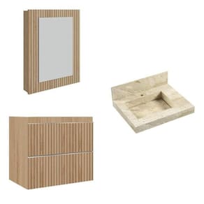 O Conjunto é composto por GABINETE + ESPELHEIRA + LAVATÓRIO. GABINETE fabricado em MDP BP (15mm), com ripas autênticas de HDF BP (06mm), na largura de 20mm. Puxadores de alumínio anodizado; caixaria estruturada com cantoneiras metálicas; gavetas com corrediças telescópicas proporcionando abertura total das mesmas; gaveta com divisores e higiênico organizador dental (removível e lavável); e gaveta interna com manta anti-derrapante, protegendo o fundo da mesma. ESPELHEIRA possuí espelho de 550 X 390 X 03 mm com acabamento lapidado, estruturado em porta com ripas autênticas de HDF BP (06mm). Possui prateleiras internas, para maior organização, e porta com dobradiças slow, com sistema de amortecedor. LAVATÓRIO com cuba esculpida, fabricado em porcelanato, com baixíssima absorção de umidade. Altura do Conjunto: 70 cm Ambiente: null Ambiente Principal: Banheiro Cor: Wood/Travertino Informação Complementar: 1x Lavatório em Porcelanato para Banheiro 60cm com Cuba Esculpida Travertino Largura: 60 Altura: 22.2 Peso: 14.79 Profundidade: 48.5 Necessita Montagem: Não