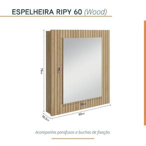 1x Espelheira para Banheiro Ripy 60cm Wood Largura: 60 cm Altura: 70 cm Peso: 12 kg Profundidade: 10,3 cm Necessita Montagem: Não