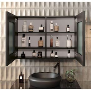 A Espelheira Industry tem prateleiras internas que facilitam organização, dobradiças reforçadas com sistema Slow, que garantem maior estabilidade e amortecimento ao fechamento de porta.
