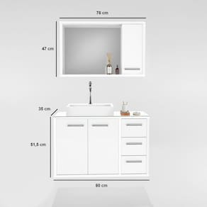O Conjunto TURIN 80 cm C/ Tampo de Vidro é uma excelente opção para você que deseja renovar o seu banheiro.