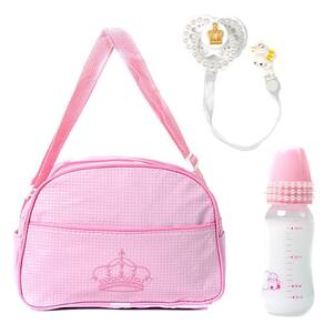 Conteúdo da embalagem: - 1 Bolsa Maternidade - 1 Chupeta Enfeitada com Prendedor - 1 Mamadeira Enfeitada