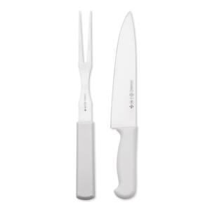 Conjunto Para Churrasco Branco Master Line Mundial 2 Peças As facas da linha masterline 7800 são destinadas ao público doméstico e profissional. Seu cabo foi desenhado para uma ergonomia perfeita, possibilitando movimentos variados com menor esforço. Além disso, possui proteção antimicrobial sanitized e cabo texturizado que ajuda na aderência e limpeza. Conjunto faca e garfo, composto por uma faca carne de 8" que garante segurança e precisão no corte e garfo de 7" para maior estabilidade e firmeza no corte. Cor: branco Material: aço inox Medidas da embalagem: 42cm comp. X 2cm alt. X 15cm larg. Peso: 0,290kg Marca: Não Informado