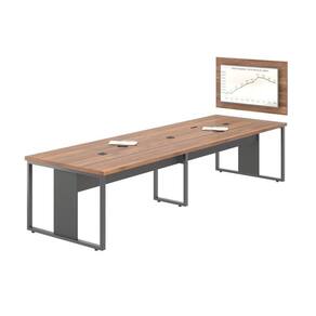 Conjunto Para Escitório Madrid Noce Preto Conjunto de Mesa de Reunião e Painel A Mesa tem tampo em MDP BP 40 mm
