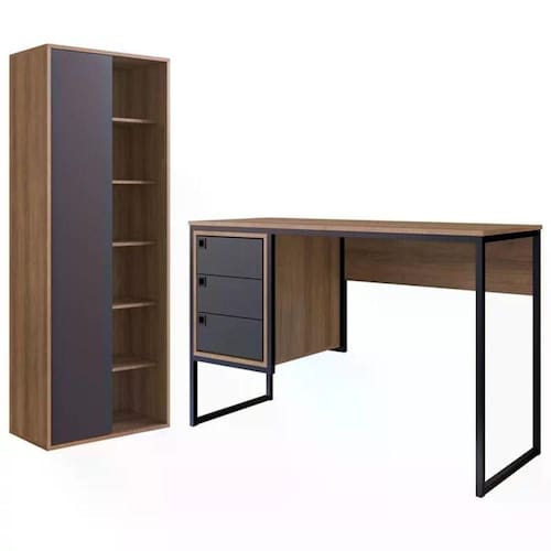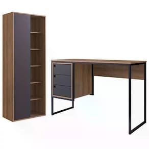 Conjunto para Escritorio 02 Peças CF002, possui destaques versáteis, que proporciona um estilo ideal para deixar o ambiente ainda mais moderno. Estrutura em MDP de 15mm, que proporciona melhor acabamento nas bordas e superfícies, contando com pintura Finish Foil (Fosco) que também é conhecido como FF atendendo a todos os requisitos de qualidade e durabilidade. O conjunto é composto por um livreiro com 01 porta de correr, 05 prateleiras, possui pés com sapatas plásticas e estrutura que suporta até 20kg, e uma mesa composta por tampo em MDP 15mm, base totalmente reforçada em metal, 03 gavetas com corrediças metálicas, puxadores plásticos, e sapatas plásticas. É a escolha certa para você que quer complementar seu mobiliário, tornando o ambiente em que estiver muito mais moderno. Fácil de montar e com acabamento office que deixa o móvel ainda mais elegante. Estes móveis chegarão em sua casa separados em 02 volumes.