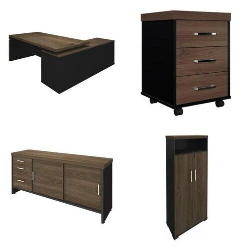 Conjunto sofisticado para escritório composto por 4 peças, projetado especialmente para você. A Estação de Diretoria com Connect oferece um ambiente espaçoso e elegante, ideal para maximizar a produtividade. O Balcão com gavetas proporciona acesso fácil a documentos e materiais essenciais. Já o Armário com nicho adiciona espaço adicional para uma organização eficiente, enquanto o Gaveteiro funcional completa o conjunto, oferecendo armazenamento seguro e acessível. Este conjunto combina estilo contemporâneo com funcionalidade prática, criando um ambiente de trabalho refinado e organizado. Altura do Conjunto: 173 cm Ambiente: null Ambiente Principal: Escritório Cor: Charuto/Preto Informação Complementar: 1x Mesa para Escritório em L com Caixa de Tomada Tamburato Estação Diretoria Charuto/Preto Largura: 200 cm Altura: 75 cm Peso: 121,5 kg Profundidade: 90,5 cm Necessita Montagem: Sim