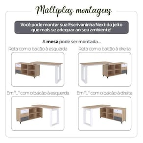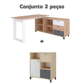 OBS: a calibração de cores do seu dispositivo pode alterar a levemente a tonalidade dos móveis. Acabamento: BP Possui Rodízio: Não Altura do Conjunto: 77.8 cm Ambiente: null Ambiente Principal: Escritório Cor: Carvalho/Grafite/Branco Informação Complementar: 1x Escrivaninha para Escritório em L 3 Gavetas 4 Nichos Home Office Next Carvalho/Grafito/BrancoLargura: 160,3 cmAltura: 75 cmPeso: 52,3 kgProfundidade: 136,4 cmNecessita Montagem: Sim1x Balcão para Escritório 1 Porta 2 Gavetas Nordik Carvalho/Grafito/BrancoLargura: 67,8 cmAltura: 77,8 cmPeso: 21,5 kgProfundidade: 36,2 cmNecessita Montagem: Sim Material Principal: MDP
