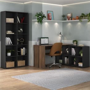 1x Escrivaninha em L com 8 Nichos Nero Ipê/Preto Largura: 135 cm Altura: 75 cm Peso: 42,75 kg Profundidade: 60 cm Necessita Montagem: Sim