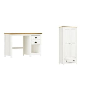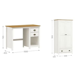 1x Escrivaninha 2 Gavetas Topázio 100% Madeira Maciça Branco /Freijó Largura: 110 cm Altura: 76,5 cm Peso: 18,4 kg Profundidade: 45,5 cm Necessita Montagem: Sim