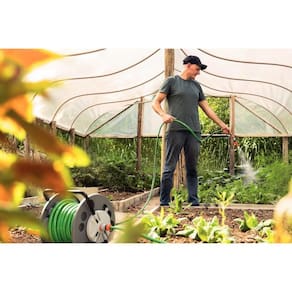 - Os enroladores de mangueira Tramontina são acessórios indispensáveis para conservar e facilitar a utilização das mangueiras Tramontina.- O enrolador de mangueira pode ser montado e desmontado sem a utilização de ferramentas.- O enrolador de mangueira tem capacidade de armazenamento de até 55 metros de mangueira de 1/2.- A mangueira é recomendada para uso doméstico ou profissional na jardinagem, em situações com pressão da água de até 10 bar [145 psi].- Para aumentar a durabilidade da mangueira, não deixá-la exposta ao sol após o uso.- O esguicho é a ferramenta da ponta do sistema, utilizado para irrigar o jardim ou a horta doméstica.- Os adaptadores e engates fazem a ligação do sistema com a rede de água e com os pontos de saída.- Use o enrolador de mangueira Tramontina para guardar a mangueira.- A temperatura máxima de trabalho da água deve ser 50 C.- Água: pode faltar. Não desperdice.- Para descarte dos produtos e embalagens siga as orientações de reciclagem vigentes.