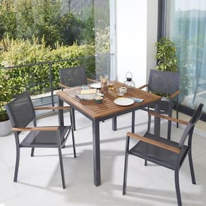 Adicione um toque de elegancia contemporanea ao seu espaco ao ar livre com este conjunto de moveis para jardim da colecao Oris da Naterial. Composto por uma mesa quadrada e quatro cadeiras, este conjunto e perfeito para refeicoes ao ar livre em areas externas sem cobertura. A mesa, com dimensoes de 75x89x89 cm, possui um tampo de madeira eucalipto e uma estrutura de aluminio, ambos em tons de cinza e marrom, que complementam qualquer decoracao ao ar livre. As cadeiras, com dimensoes de 84x55x58 cm, possuem assentos e encostos de tecido textilene, proporcionando um conforto excepcional. Este conjunto de moveis e feito de materiais de alta qualidade para garantir sua durabilidade. O aluminio na estrutura nao enferruja, garantindo que o conjunto mantenha sua aparencia atraente mesmo em condicoes umidas. A madeira eucalipto Utilizado no tampo da mesa e certificada pelo FSC, garantindo que voce esta fazendo uma escolha ambientalmente consciente. Por favor, note que este conjunto de moveis vem desmontado, mas pode ser montado por mais de uma pessoa leiga, seguindo as instrucoes fornecidas no manual que acompanha o produto. Este conjunto de moveis para jardim e ideal para refeicoes ao ar livre, encontros casuais ou simplesmente para relaxar ao ar livre. Com capacidade para quatro pessoas, e perfeito para familias ou pequenos grupos. A do fabricante de tres anos cobre defeitos de fabricacao, proporcionando-lhe tranquilidade. Adicione este conjunto de moveis ao seu jardim, patio ou qualquer outro espaco ao ar livre e desfrute do conforto e estilo que ele oferece. Resumo das caracteristicas do produto: - Conjunto de moveis para jardim - Colecao Oris da Naterial - Mesa quadrada e quatro cadeiras - Feito de aluminio e madeira eucalipto - Cor cinza e marrom - Ideal para refeicoes ao ar livre - Adequado para areas externas sem cobertura - Mesa com dimensoes de 75x89x89 cm - Cadeiras com dimensoes de 84x55x58 cm - Montagem necessaria - do fabricante de tres anos. Marca: Não Informado Ean: 4050118023466