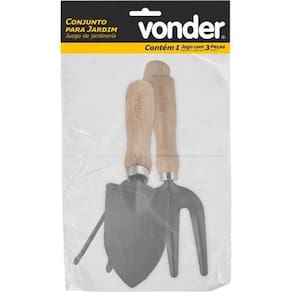 Material do corpo do conjunto para jardim: Metálico | N de peças: 3 peças | Material do cabo: Madeira | Massa aproximada (peso) (kg): 405 g