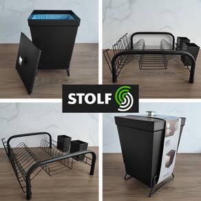 Com design altamente sofisticado, este kit para pia de cozinha da linha Black Stolf é a escolha ideal para quem busca por funcionalidade, elegância, modernidade e organização para a cozinha. Formado por uma lixeira quadrada 6,5 litros e um escorredor de louças com dois compartimentos porta talheres, este conjunto traz a neutralidade elegante do preto fosco que se adapta a diferentes estilos de ambiente.