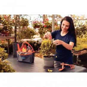 - A bolsa é fabricada em poliéster e serve para carregar as ferramentas, oferecendo mais facilidade no cuidado das plantinhas;