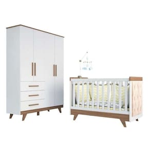Possui Rodízio: Não Acompanha Colchão: Não Altura do Conjunto: 209.6 cm Ambiente: Quarto de Bebê Ambiente Principal: Quarto de Bebê Cor: Branco Brilho/Carvalho/Pena Areia Estrado com Regulagem de Altura: Sim Informação Complementar: 1x Berço Mini Cama Retrô Branco Brilho/CarvalhoLargura: 135,5 cmAltura: 92,2 cmPeso: 39,28 kgProfundidade: 76,3 cmNecessita Montagem: Sim1x Guarda Roupa de Bebê 4 Portas 3 Gavetas Retrô Branco/CarvalhoLargura: 154,8 cmAltura: 209,6 cmPeso: 103,6 kgProfundidade: 49,8 cmNecessita Montagem: Sim1x Kit Capitonê para Berço Retrô 2018 Tecido Pena 01 AreiaLargura: 62 cmAltura: 71,5 cmPeso: 6,4 kgProfundidade: 4 cmNecessita Montagem: Sim Material Principal: MDF Permite a Utilização de Cama Auxiliar: Não Pintura Atóxica: Sim Suporta Até (kg): 40 kg Tamanho: