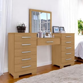 Apresentamos o conjunto perfeito para quem busca unir estilo e funcionalidade. Duas cômodas espaçosas e uma penteadeira encantadora!