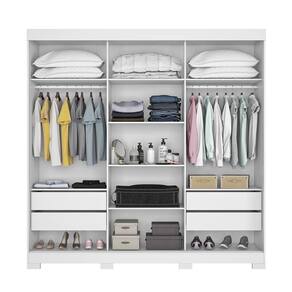 MDPDeixe seu quarto mais organizado e elegante com o Conjunto Para Quarto Amoudi Móveis. Composto por um guarda-roupa com 3 portas de correr e espelho, um closet sem portas com 4 gavetas e uma cômoda com 4 gavetas e 1 porta, ele oferece amplo espaço interno e design moderno para transformar o ambiente.