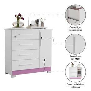 Montagem : A Cômoda possui montagem , ou seja, na opção branco, algumas peças tem uma lado branco e um lado rosa, e vc pode escolher o lado na hora da montagem, deixando a peça rosa aparente ou todo branco