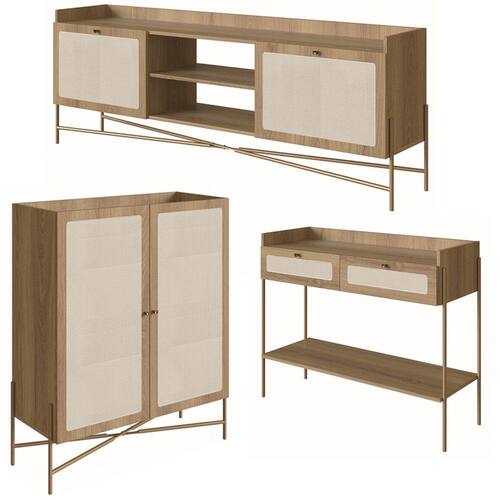 Conjunto Para Sala de Estar 3 Peças, Linha Oslo Artesano. Traz como característica um traço artesanal, suave, acolhedor e sofisticado. Estrutura em MDP de 15mm, acabamento em pintura BP na cor Hanover (Fosco), e Pés de tubo metálico em aço com pintura epóxi na cor dourada. Portas com dobradiças metálicas com proteção anticorrosão, rack possui duas portas basculantes com articulador com trava e é ideal para Tv de até 70 Polegadas, o aparador conta com 02 gavetas com corrediças metálicas simples, os puxadores são de poliestireno na cor Dourado, móveis com aplique palhinha de tela sintética (PVC com poliéster), fixada na parte externa das portas e gavetas, as extremidades dos pés possuem ponteiras plásticas para evitar atrito do móvel com o piso, afim de evitar acidentes, design escandinavo minimalista, é a opção ideal para um ambiente com toque sofisticado e ao mesmo tempo aconchegante. Mais produtos da Linha Oslo, você encontra em nosso site, podendo fazer a composição completa para sua casa, são diversos itens com design prático e funcional para tornar a vida mais facil e a casa mais alegre. Estes móveis chegarão em sua casa separados em 06 volumes.