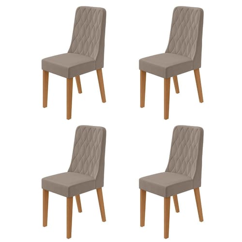Conjunto para Sala de Jantar 4 Cadeiras Estofadas Luar Amendoa /Animale Bege