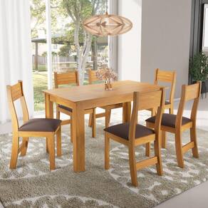 A Sala de Jantar torna o uso desse móvel importante com 6 cadeiras para garantir uma usabilidade plena para o seu dia a dia. Ideal para cozinhas e salas de jantar, o kit oferece amplo espaço para que você possa dispor pratos, copos, talheres e até uma travessa com o quitute da vez, enquanto acomoda os convidados com aconchego e receptividade Medida da Mesa (A x L x P): 75,6x136x75cm Peso da Mesa: 18,5 kg Mesa suporta até: 50.0000 Acabamento da Cadeira/Banco: Pintura UV Acabamento da Mesa: Pintura UV Almofada do assento: Fixa Altura do Conjunto: 88.5 Ambiente Principal: Sala de Jantar Cadeira/Banco estofada: Somente Assento Estofado Cadeira/Banco Estofada: Somente Assento Estofado Cadeira/Banco suporta até: 80.0000 codigo_ean: 7909903120569 Complexidade da Montagem: Média: pode ser montado por mais de uma pessoa e/ou necessite de maior conhecimento para montagem Cor: Mel/Marrom Cor da Base: Marrom Cor do Produto: Mel/Marrom Cor do Tampo: Marrom Cor Flex: Não Cor Secundária: Marrom De Canto (Canto Alemão): Não Enchimento do Assento: Espuma D-16 Enchimento do Encosto: MDF Espessura do Tampo: 15 mm Estrutura do Assento: MDP/Espuma Estrutura do Encosto: MDF Formato do Tampo: Retangular Informações Complementares: Sala de Jantar 6 lugares Manual de Especificação Técnica: https://product-hub-prd.madeiramadeira.com.br/794358/documents/6b3b1ff3-a771-4427-ba17-54bfd69fb3faarmanivioletacombrisacopia.pdf Manual de Montagem e Instalação: https://product-hub-prd.madeiramadeira.com.br/794358/documents/07723957-d85e-4db4-93c5-a36efa9425casavioletacadeirabrisacopia.pdf Manutenção: Limpar com pano levemente umedecido com água Material da Base da Mesa: MDP Material da Estrutura da Cadeira: MDF/MDP Material do Tampo: MDP Medida da Cadeira/Banco (A x L x P): 88,5x36,6x43,5cm Medida do Tampo (L x C x E): 136x75x1,5cm Mesa Dobrável: Não Mesa Extensível: Não Montagem Flex: Não Necessita Montagem: Sim Origem do Produto: Nacional Peso da Cadeira/Banco: 10,3 kg Possui Apoio para Braços: Não Possui Apoio Para os Pés: Não Possui Suporte Giratório: Não Quantidade de Cadeiras: 6 Quantidade de Lugares: 06 Recomendações de Uso, Manutenção e Limpeza: Limpar com pano levemente umedecido com água Revestimento da Cadeira/Banco: Veludo Sistema de Montagem: Parafusos e Cavilhas Ean: 7909903120569