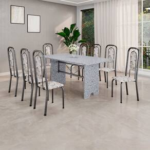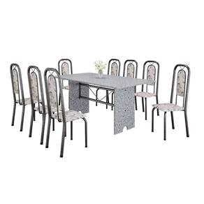 Quer deixar sua casa completa e prática? Uma dica bacana de como transformar o seu lar, deixando-o mais receptivo e bonito? Então você precisa de móveis indispensáveis para deixar seu lar muito mais aconchegante, receptivo e sempre disponível para receber a visita de amigos, familiares e convidados. Você vai se apaixonar por este incrível e moderno Conjunto de Mesa com 8 Cadeiras. Ideal para cozinha, ele é a melhor opção para completar o espaço que você desejar. Aproveite!! Medida da Mesa (A x L x P): 75,8 cm x 180 cm x 75 cm Peso da Mesa: 104,24 kg Mesa suporta até: 10.0000 Acabamento da Cadeira/Banco: Pintura Texturizada Acabamento da Mesa: Pintura Texturizada Ambiente Principal: Cozinha Cadeira/Banco Estofada: Encosto e Assento Estofados Cadeira/Banco estofada: Encosto e Assento Estofados Cadeira/Banco suporta até: 120.0000 codigo_ean: 7900288152534 Complexidade da Montagem: Baixa: pode ser montado por uma pessoa sozinha Cor: Arabesco / Prata Cor do Produto: Arabesco / Prata Cor Secundária: Bege De Canto (Canto Alemão): Não Enchimento do Assento: Espuma D-16 Escala de Brilho: Brilhante Espessura do Tampo: 1,5 mm Estrutura do Assento: MDP Formato do Tampo: Retangular Itens Inclusos: 1 Mesa, 8 Cadeiras, Manual de Montagem e Kit Ferragens Linha ou Coleção: Lara Manual de Montagem e Instalação: https://product-hub-prd.madeiramadeira.com.br/782356458/documents/fcd87c94-fe7d-4be4-8ebe-27d07ca4332780282374535281744236778593.pdf Marca: Soma Móveis Material da Base da Mesa: Aço Material da Estrutura da Cadeira: Aço Material do Tampo: Granito Material Principal: Madeira/MDF Medida da Cadeira/Banco (A x L x P): 105 cm x 37 cm x 40 cm Medida do Tampo (L x C x E): 180cm x 75cm x 1,5 cm Mesa Extensível: Não Necessita Montagem: Sim Origem do Produto: Nacional Peso da Cadeira/Banco: 2,7 kg Possui Apoio Para os Pés: Não Possui Suporte Giratório: Não Quantidade de Cadeiras: 8 Quantidade de Lugares: 08 Recomendações de Uso, Manutenção e Limpeza: Não permitir que molhe os pés da base, usar um pano de tecido macio e seco, evitar detergentes, alvejantes e produtos químicos de limpeza; no tampo usar tecido macio levemente umedecido. Revestimento da Cadeira/Banco: Couro Ecológico Sistema de Montagem: Parafusos Marca: Não Informado