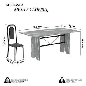 Medida da Mesa (A x L x P): 75,8 cm x 180 cm x 75 cm