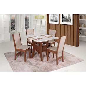 Produto produzido com textura alto relevo, acabamento em Impressão ultra violeta, tampo verniz alto brilho e base verniz fosco. Cadeira com design diferenciado e muito confortável. Fácil montagem e resistência. Medida da Mesa (A x L x P): 78 cm x 90 cm x 90 cm Peso da Mesa: 15 kg Mesa suporta até: 100.0000 Acabamento da Cadeira/Banco: Pintura UV Acabamento da Mesa: Pintura UV Ambiente Principal: Sala de Jantar Cadeira/Banco estofada: Encosto e Assento Estofados Cadeira/Banco Estofada: Encosto e Assento Estofados Cadeira/Banco suporta até: 90.0000 codigo_ean: 7909903440971 Complexidade da Montagem: Baixa: pode ser montado por uma pessoa sozinha Cor: Naturalle/Off White Cor do Produto: Naturalle/Off White De Canto (Canto Alemão): Não Enchimento do Assento: Espuma D-14 Escala de Brilho: Fosco Espessura do Tampo: 18 mm Formato do Tampo: Quadrado Itens Inclusos: 1 Mesa, 4 Cadeiras, Kit Ferragem e Manual de Montagem Manual de Montagem e Instalação: https://product-hub-prd.madeiramadeira.com.br/872260/documents/0149e821-e15c-43b0-92e4-e292d15bc0291549197mesaamandacadnobre.pdf Material da Base da Mesa: MDF Material da Estrutura da Cadeira: MDF Material do Tampo: MDF Medida da Cadeira/Banco (A x L x P): 90cmx39cmx37cm Medida do Tampo (L x C x E): 90cmx90cm Mesa Extensível: Não Necessita Montagem: Sim Origem do Produto: Nacional Peso da Cadeira/Banco: 6,32 kg Possui Apoio para Braços: Não Possui Apoio Para os Pés: Não Possui Suporte Giratório: Não Quantidade de Cadeiras: 4 Quantidade de Lugares: 04 Recomendações de Uso, Manutenção e Limpeza: Limpeza com pano macio e levemente umedecido. Não utilizar solventes a base de inflamáveis e não utilizar produtos abrasivos. Revestimento da Cadeira/Banco: Linho Sistema de Montagem: Parafusos e Cavilhas