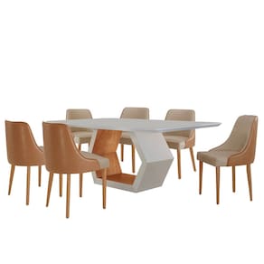 Conjunto para Sala de Jantar Mesa Sarah em Madeira Tampo 180cm com Vidro e 6 Cadeiras Roma Star Caramelo/ Off White / Cinamomo Imbuia - Branco