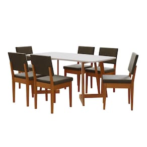 Conjunto para Sala de Jantar Tampo Oval 170cm com 6 Cadeiras Madeira Maciça Miami Cerejeira/Off White/Grafite - Cinza