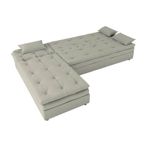 Conteúdo da Embalagem: 1 Sofá Cama, 1 Chaise, 3 Almofadas e Manual de Instruções;