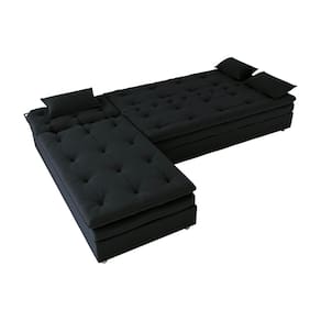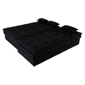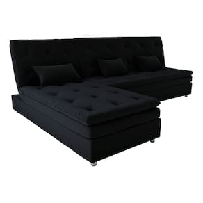 Conjunto para Sala Penelope Sofá-cama 3 Lugares com Chaise reclinável Veludo Inca Preto - Matrix