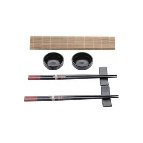 Composição do Conjunto: - 02 molheiras de cerâmica 5x3cm - 02 Pares de Hashi e PVC - 02 Suportes para Hashi em Cerâmica - 02 Esteiras em Bambu 25x20cm