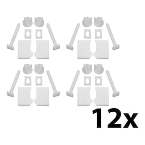 Características: - Contém 12 unidades; - conjunto de fixação indicado para os assentos ovais e especiais almofadados; - compatível com assentos: tpk/as, tpv/pp, tmt/k, tsl/k, tth/k, ttp/k, tvt/k, tar/as, tah/k e tlu/k; - material: pvc; - dimensões: 80mm x 30mm x 100mm.