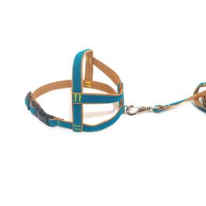 Peitoral confeccionado em tecido de veludo liso e nylon; Presilha com regulagens de tamanho em plastico resistente; Guia em tecido de veludo liso e nylon; Mosquetão médio com trava de segurança; Indicado para cachorros de pequeno e médio porte. Cor: verde