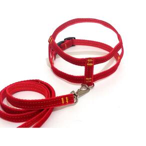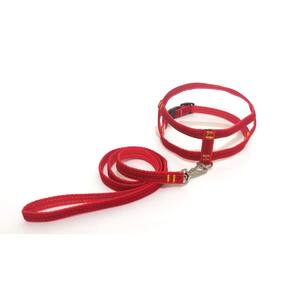 Peitoral confeccionado em tecido de veludo liso e nylon; Presilha com regulagens de tamanho em plastico resistente; Guia em tecido de veludo liso e nylon; Mosquetão médio com trava de segurança; Indicado para cachorros de pequeno e médio porte. Cor: vermelho.