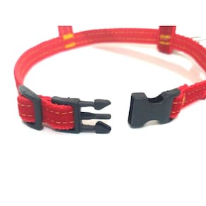 Peitoral confeccionado em tecido de veludo liso e nylon; Presilha com regulagens de tamanho em plastico resistente; Guia em tecido de veludo liso e nylon; Mosquetão médio com trava de segurança; Indicado para cachorros de pequeno e médio porte. Cor: vermelho